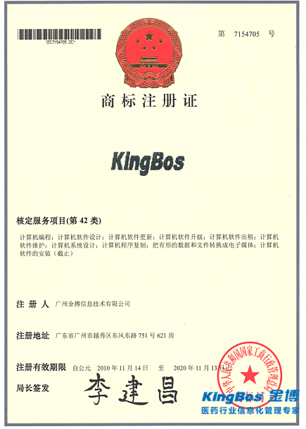 KINGBOS商標(biāo)注冊(cè)證