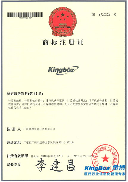 KINGBOX商標(biāo)注冊(cè)證