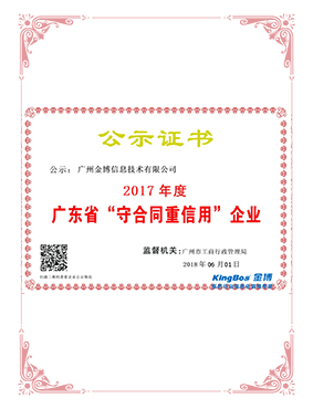 2017年廣東省”守合同重信用“企業(yè)證書(shū)