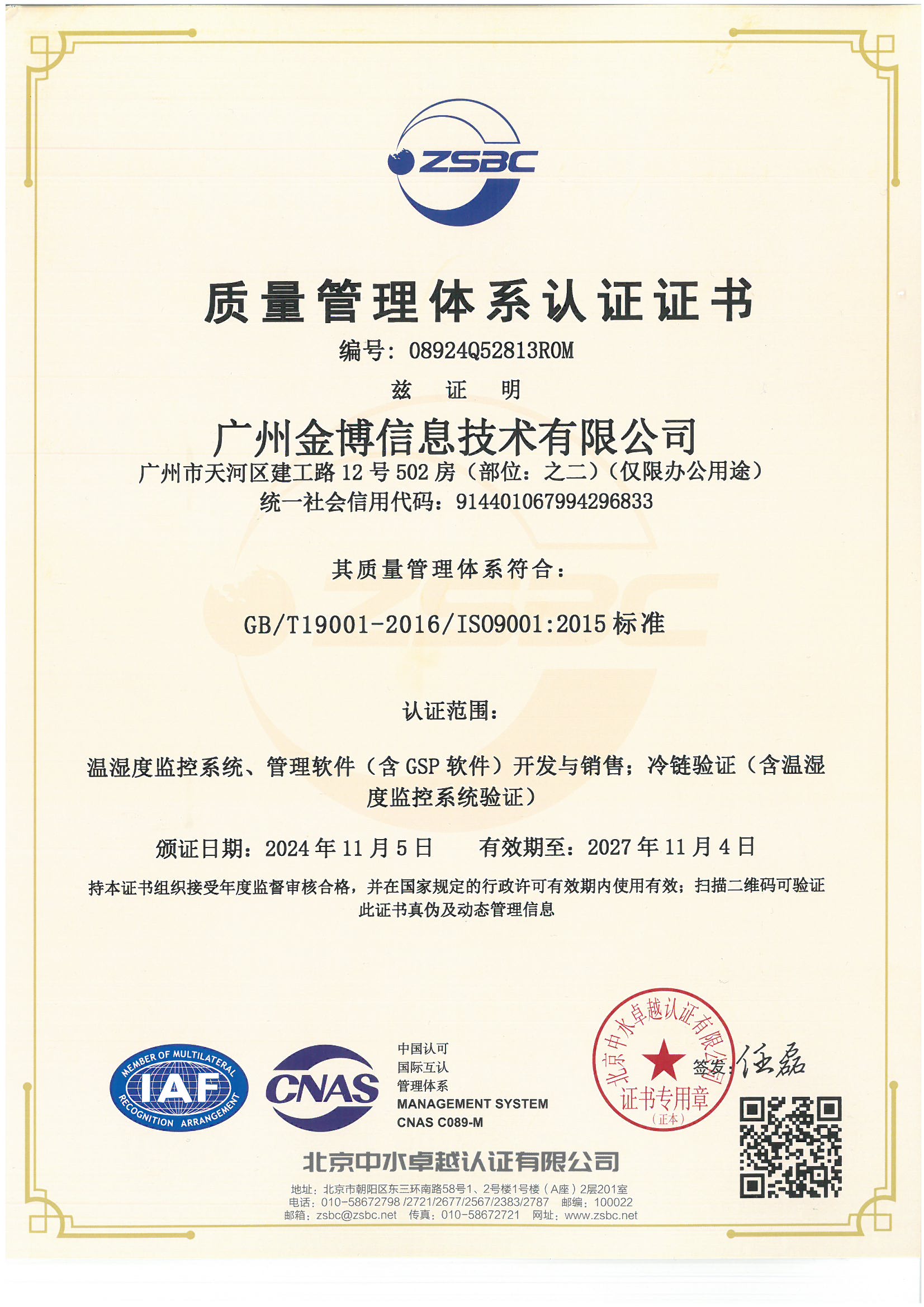 ISO9001:2015認(rèn)證證書(shū)